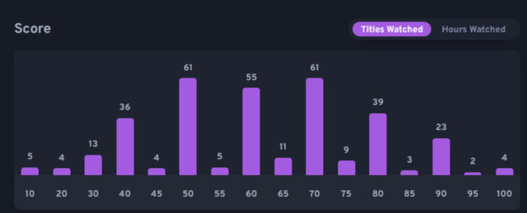 Ratings follow a general rubric starting at a 5-6 and gaining or losing .5 pts depending on quality of animation and elements such as/not limited to:storytelling | world building | character building | rewatch value | effective utilization, subversion, or refinement of tropes etcThus, they follow a Bell Curve in general.Anilist is the most updated.